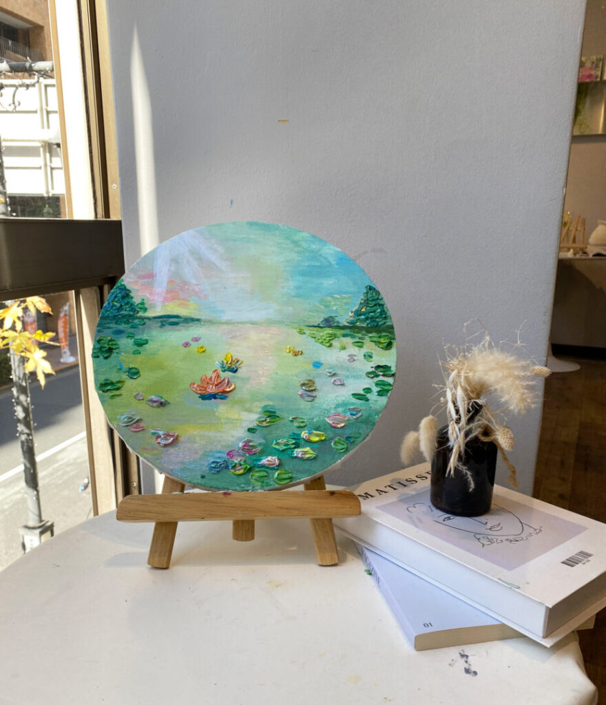私は、フランスの画家 クロード・モネの代表作「睡蓮」をモチーフに、オリジナル睡蓮を描くコースに参加しました。