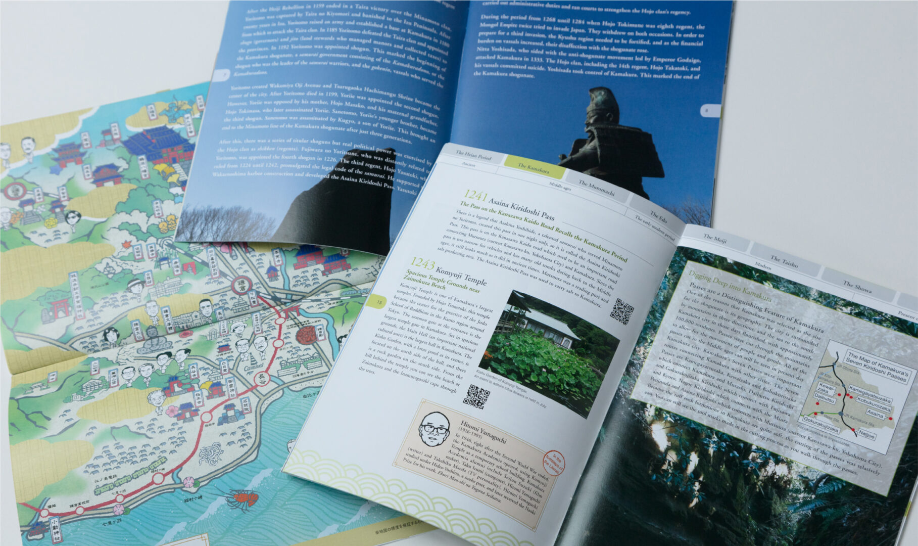古都鎌倉は、自然と一体となった中世以来の社寺が醸し出す雰囲気の中に、各時代の建築や土木遺構、鎌倉文士らが残した芸術文化、生業や行事など存在する。本書では 合計54の構成文化財を編集(取材含む)・デザインし、A5サイズ44ページの出版物として展開した。