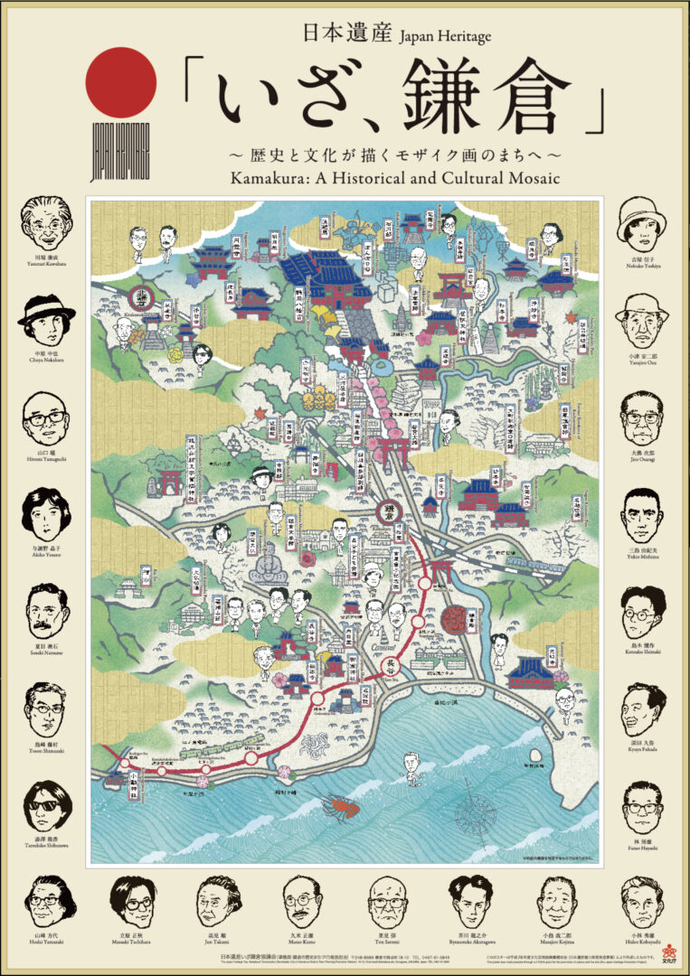 古都鎌倉は、各時代の建築や土木遺構、鎌倉文士らが残した芸術文化、生業や行事など様々な要素が、モザイク画のように組み合わされている。日本遺産として登録された有形・無形の文化遺産を出版物として紹介する。
