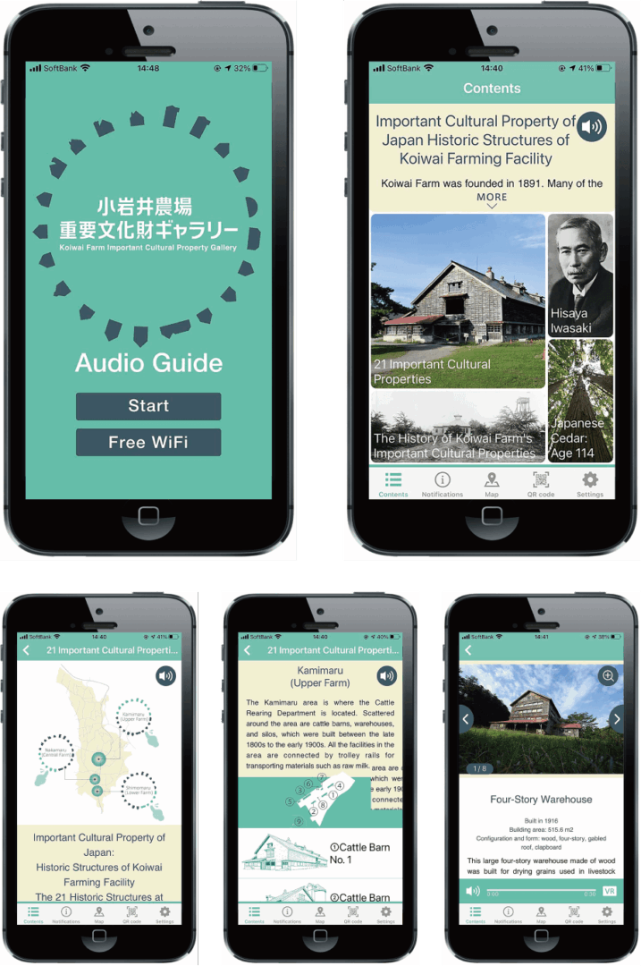 最新のデジタル技術(VR・AR)を用いて、国指定重要文化財21棟の紹介と共に関連する歴史や建造物の使用用途などを紹介する。同時に多言語化(日本語、英語、中国語)により、日本の農業近代化の変遷について広く国内外に訴求する。