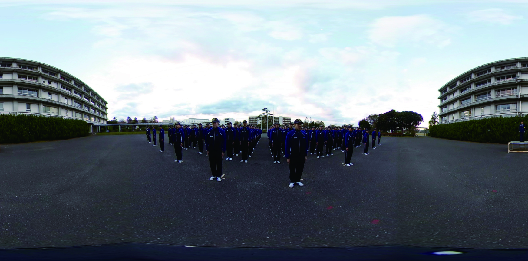 早朝の点呼に始まり、各教場の授業内容や寮生活など警察学校の1日を通して、「自分事」目線で疑似体験できるように、全てVR映像として制作した。